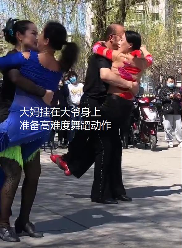 大妈挂在大爷身上,旋转穿裆上演各种高难度动作