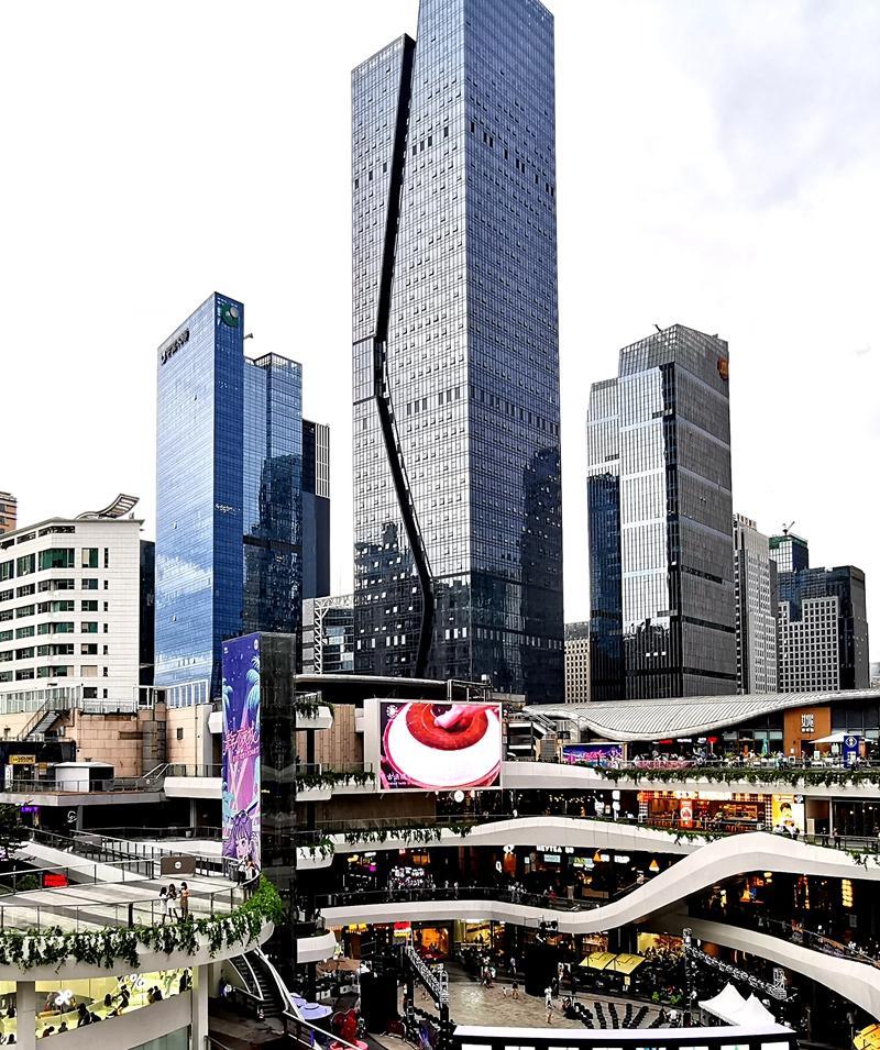 深圳CBD购物公园摩天楼群。