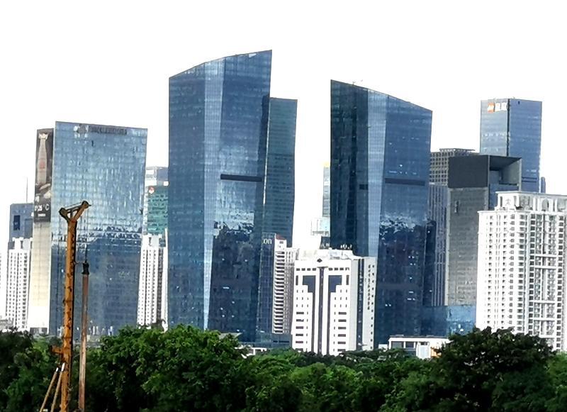 上图是从深南大道看深圳CBD的摩天高楼,由近及远分别是招商银行大厦,深圳证券交易中心新大楼,博时基金大厦,深圳太平金融大厦等等。这一带是深圳CBD的金融核心区。