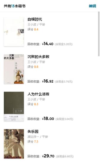 3、出售闲置书籍,通过出卖自己的闲置书籍赚取书费。但不是什么书都收的,它要审核的,教辅资料不收,破烂无法看的不收。