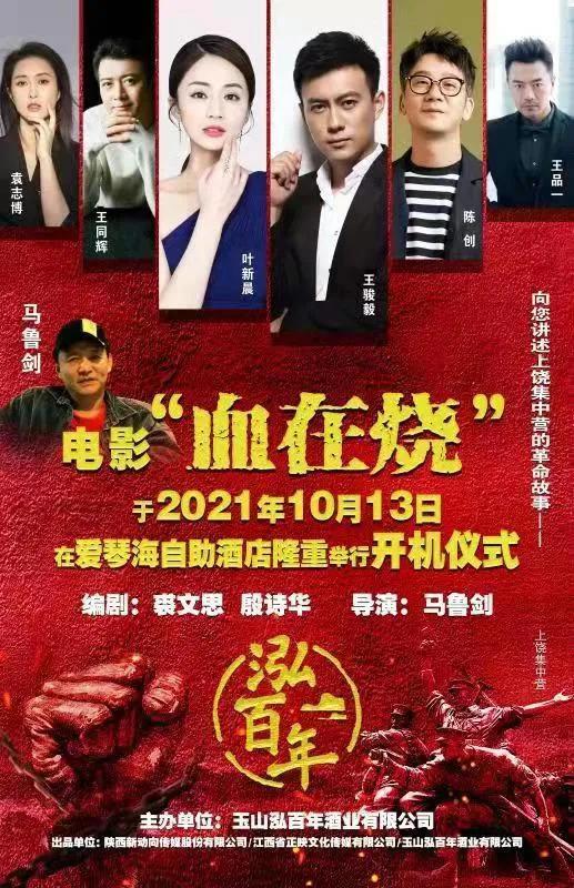 由马鲁剑导演执导,王骏毅、袁志博、王品一、王同辉、陈创、叶新晨、梁建华主演的电影《血在烧》于10月13日正式在上饶开机,该影片以震惊中外的皖南事变为背景,讲述了上饶集中营的革命故事,展现革命先烈们为了革命事业不屈不挠,在监狱中保守党组织秘密,同敌人展开顽强斗争的故事。