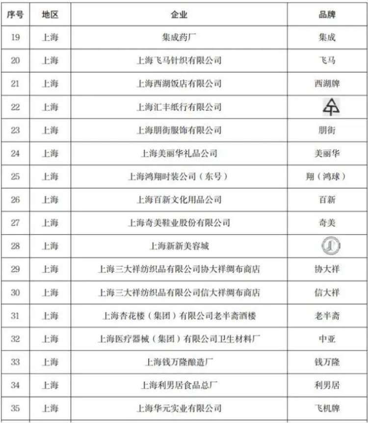 在没有通过中华老字号复核的品牌中,上海有17个品牌,包括老半斋、飞马、西湖牌、朋街、美丽华、百新、信大祥、协大祥等。
