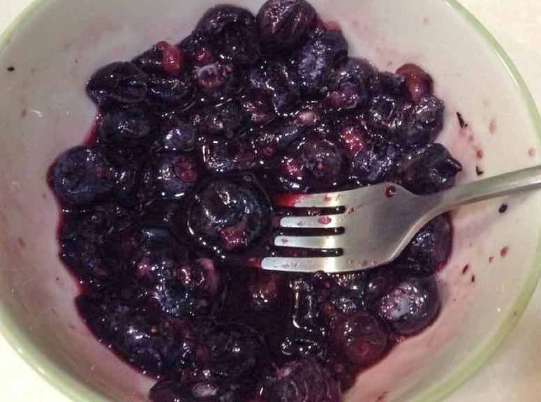 1、首先将蓝莓洗净,然后用叉子压碎,适量地留一点蓝莓果,吃起来有颗粒感味道更好;