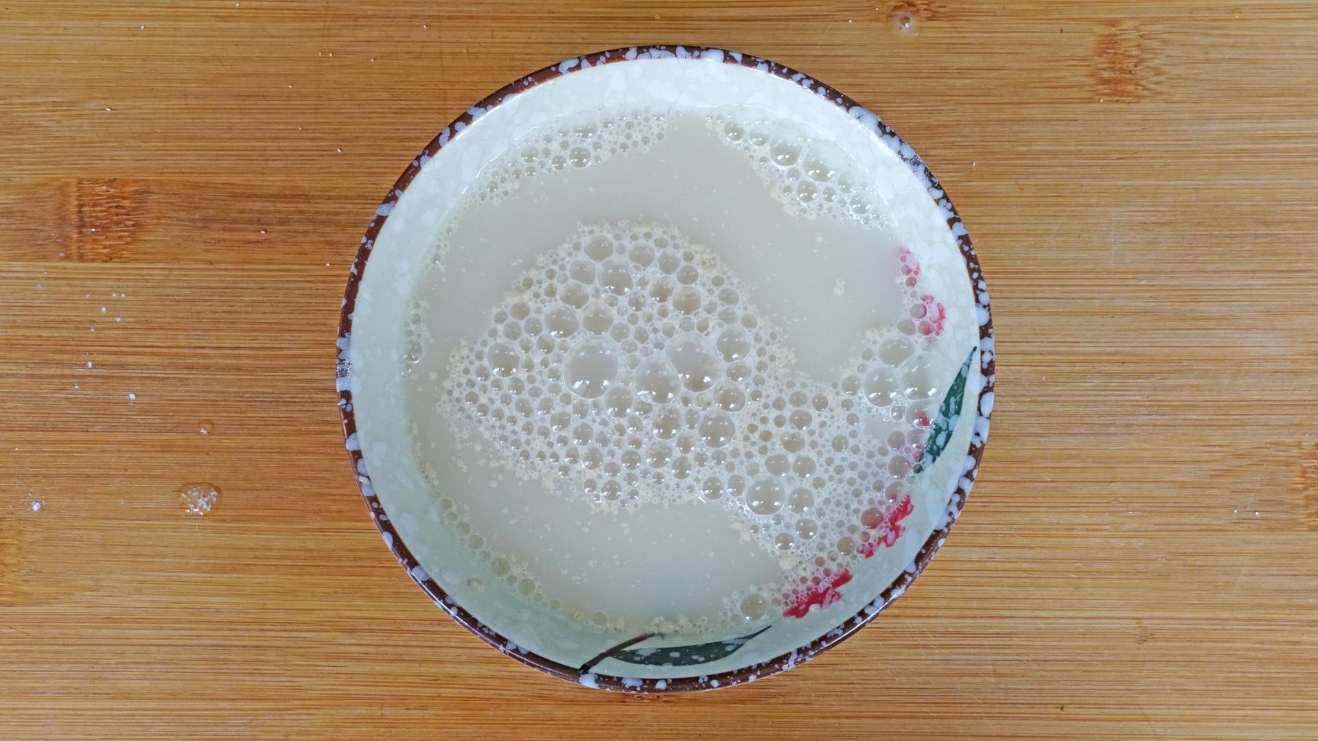 1、3克酵母先用180毫升的温水化开;