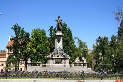 这座雕像是“亚当·密茨凯维支”,他是波兰伟大的爱国诗人和社会活动家,经历了被监禁、放逐、流亡和战斗的一生。他从不屈服,是波兰民族的骄傲,也是民族苦难的象征,争取自由解放的精神一直激励着波兰人民。