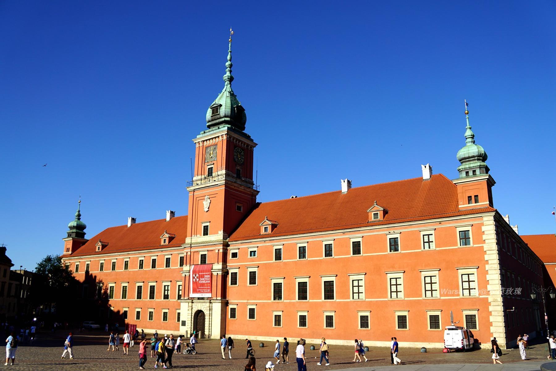 广场一角这座漂亮的砖红色建筑是王宫城堡,始建于13世纪末,曾一度是玛佐大舍公国公爵的住宅。1569-1572年改建为泽格蒙特· 奥古斯特国王的王宫和议会所在地。齐格蒙特三世迁都至华沙后于1598-1619年重建城堡。二战期间完全被破坏,战后重建,现为波兰国家博物馆对外开放。