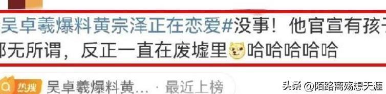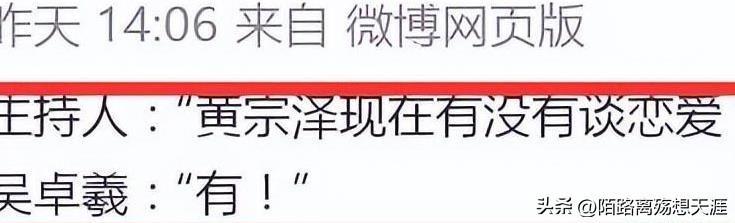 不久前,吴卓羲在一次活动上被问及黄宗泽的恋爱经历时,坦率地回答他有恋爱经历。