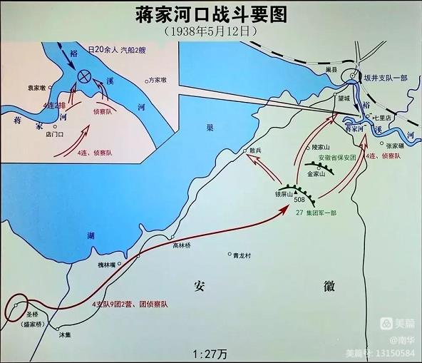 日本鬼子占领巢县外,除了留下预备队外,主力继续向合肥方向进攻。巢县守备队经常派出少数日军下乡抢掠。巢县东南5公里的蒋家河口是敌人乘船常去掠夺的地区。该地区河道纵横,芦苇丛生,地形复杂,利用堤埂设伏,十分有利。