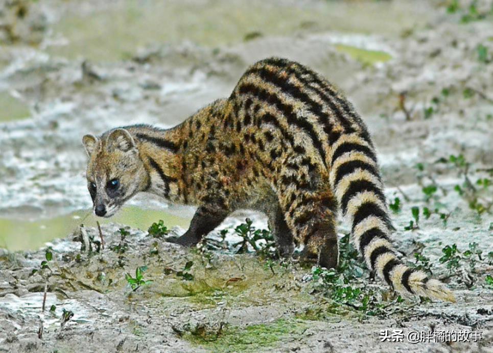 麝香猫科的果子狸,其鼻梁上有着白色的图案,长着一张似浣熊的脸,看起来非常的可爱。