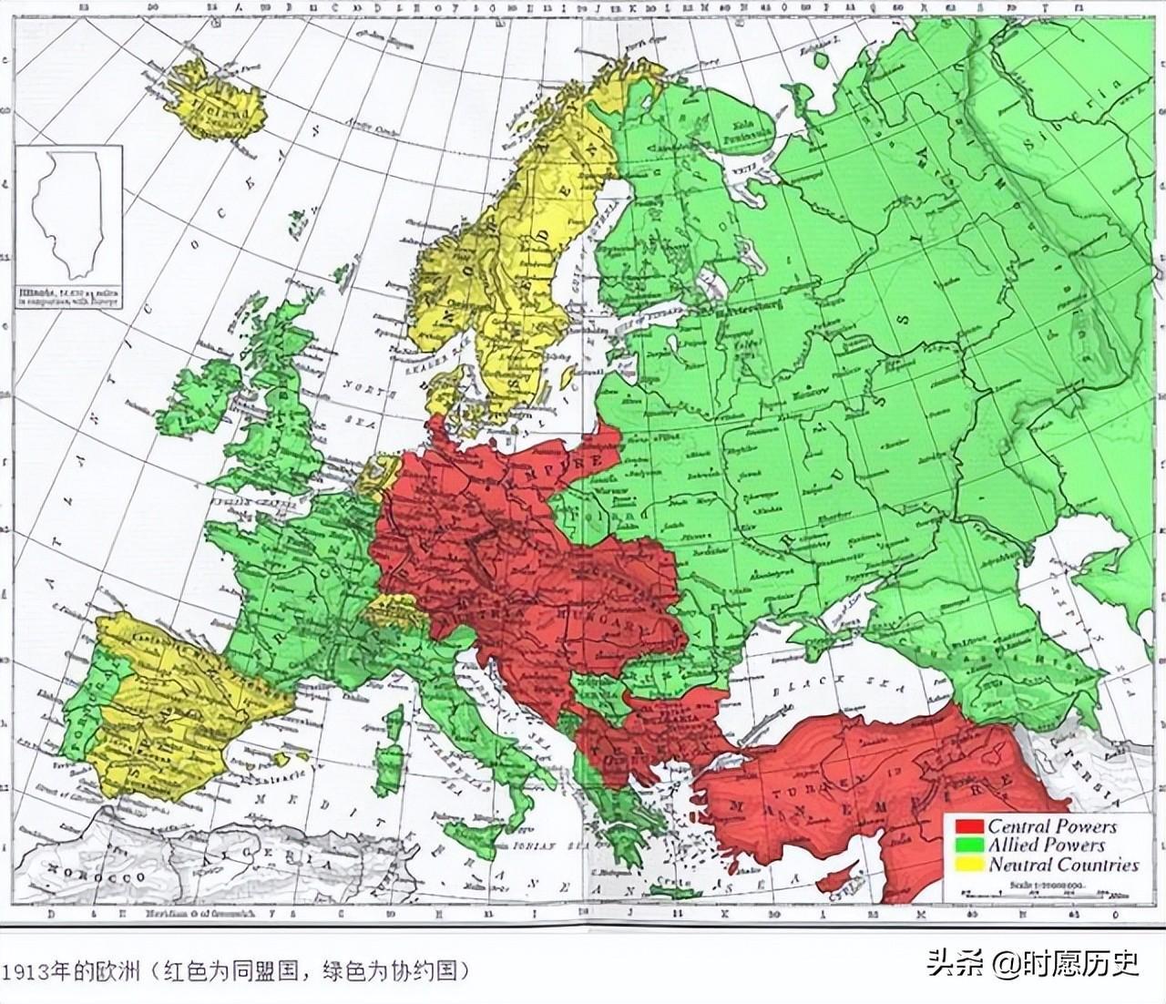 在15世纪开始,许多强大的国家向外扩张,侵略落后的国家,把这些国家发展成自己的同盟国。等到了19世纪末至20世纪初,这些资本主义发现能够侵略的国家差不多都侵略完了,但是自己比别人的殖民地少,那怎么能甘心呢。于是后来发展起来的,同盟国的代表德意志帝国不满足于自己现在侵略的地盘,就看上了大英帝国的地盘。要知道当时英国抢占的殖民地总面积已经是英伦半岛100倍。