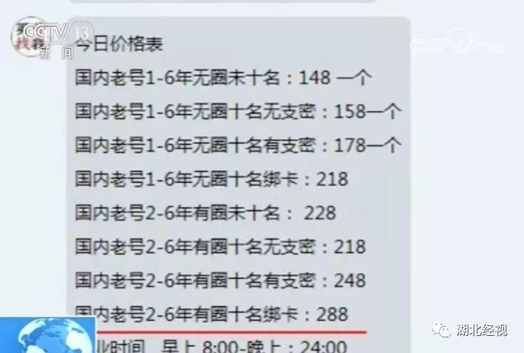 记者在某网站看到一个“微信号交易专区”,找到一位卖实名微信号的卖家。卖家发来的价格表显示,“有朋友圈十名、有支付密码248元”,“有朋友圈十名、绑银行卡288元”......