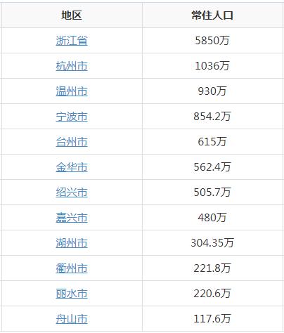 台州常住人口615万人,是浙江第四人口大市;金华常住人口562.4万人,是浙江第五人口大市;绍兴常住人口505.7万人,是浙江第六人口大市。