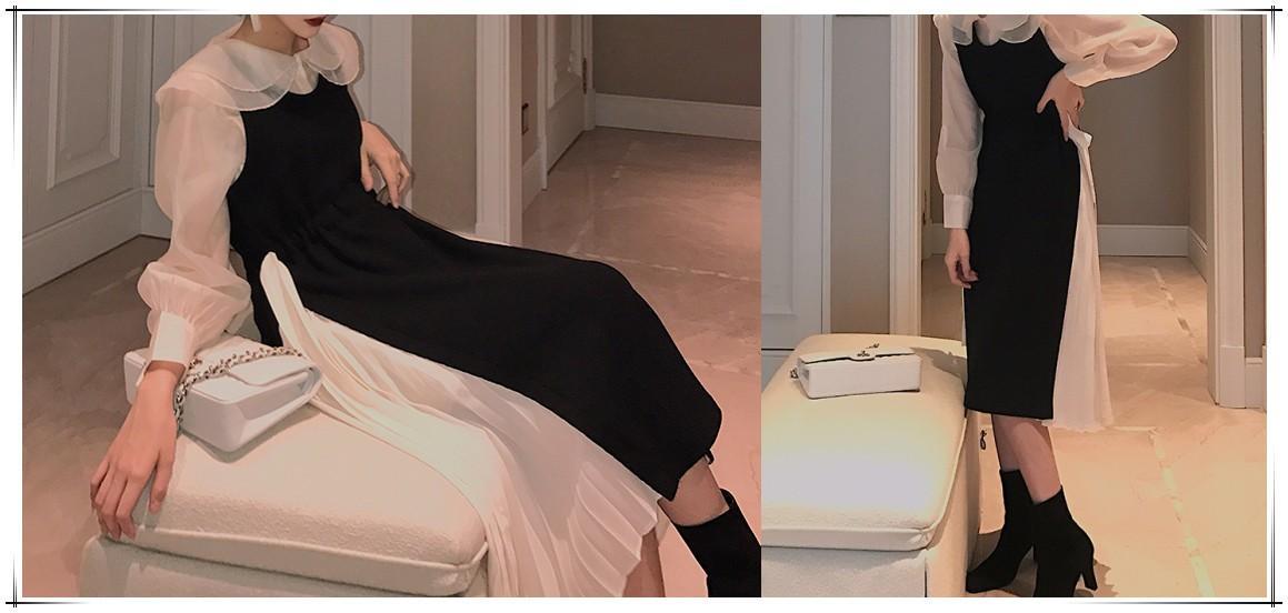 黑色是最经典还很百搭的颜色,作为内搭也是众多女生选择的一款穿搭,外搭配上一件格子的连衣裙,为了防止尴尬,下身能够穿搭光腿神器或者打底裤都是可以的哦,很有轻熟风。
