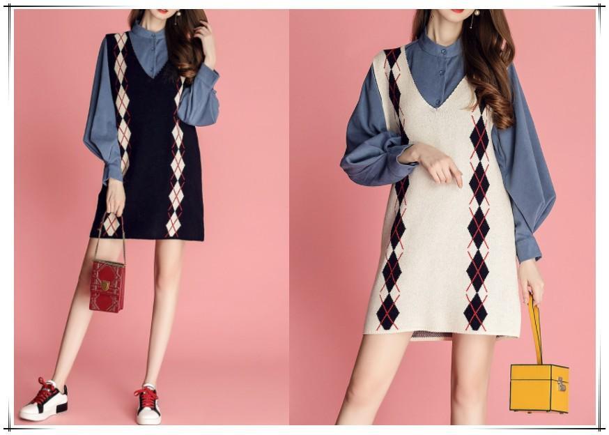 内搭配上背心的连衣裙,外搭配上一件呢子外套,这样的搭配是出境率最高的搭配,轻松让你穿出时兴风,选择菱形的设计,添加了女性的成熟风味,矮个子的 女生也是能够选择的。
