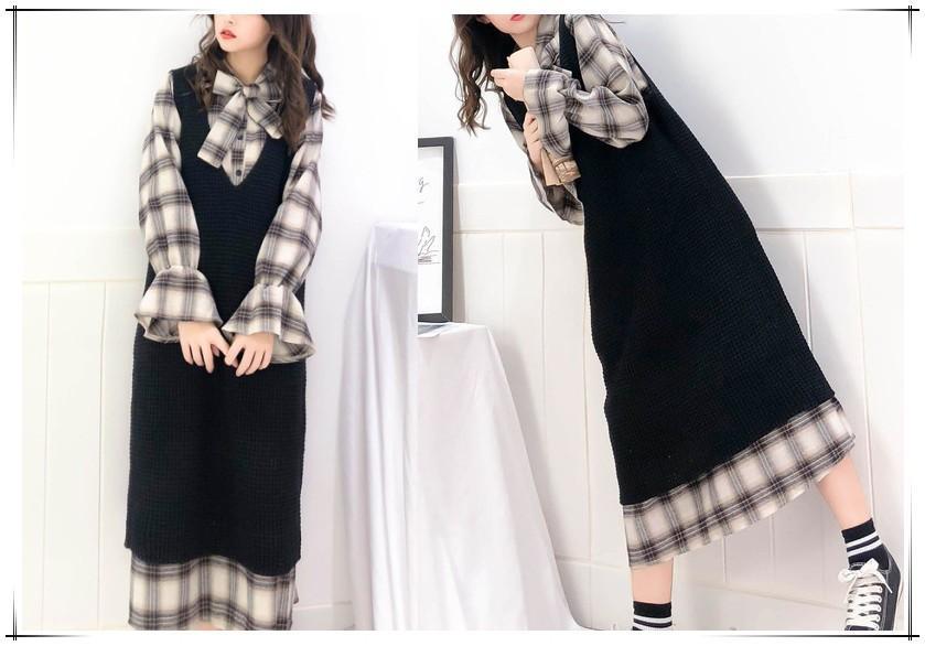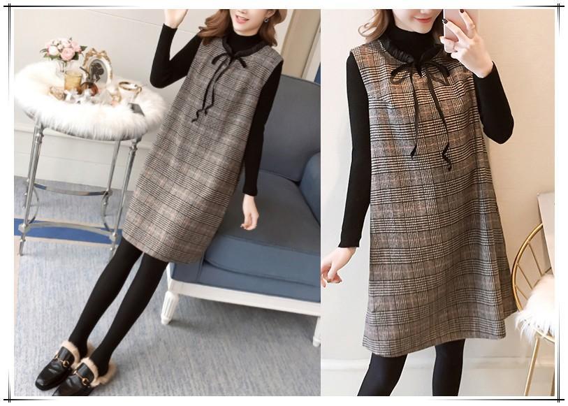 引荐这身搭配十分合适女学生,内搭配上一件格子的连衣裙,外套上一件背心的连衣裙,这样的搭配,很有层次感,黑色和灰色搭配在一同,永远都不会太土气,轻松让你穿出时兴。