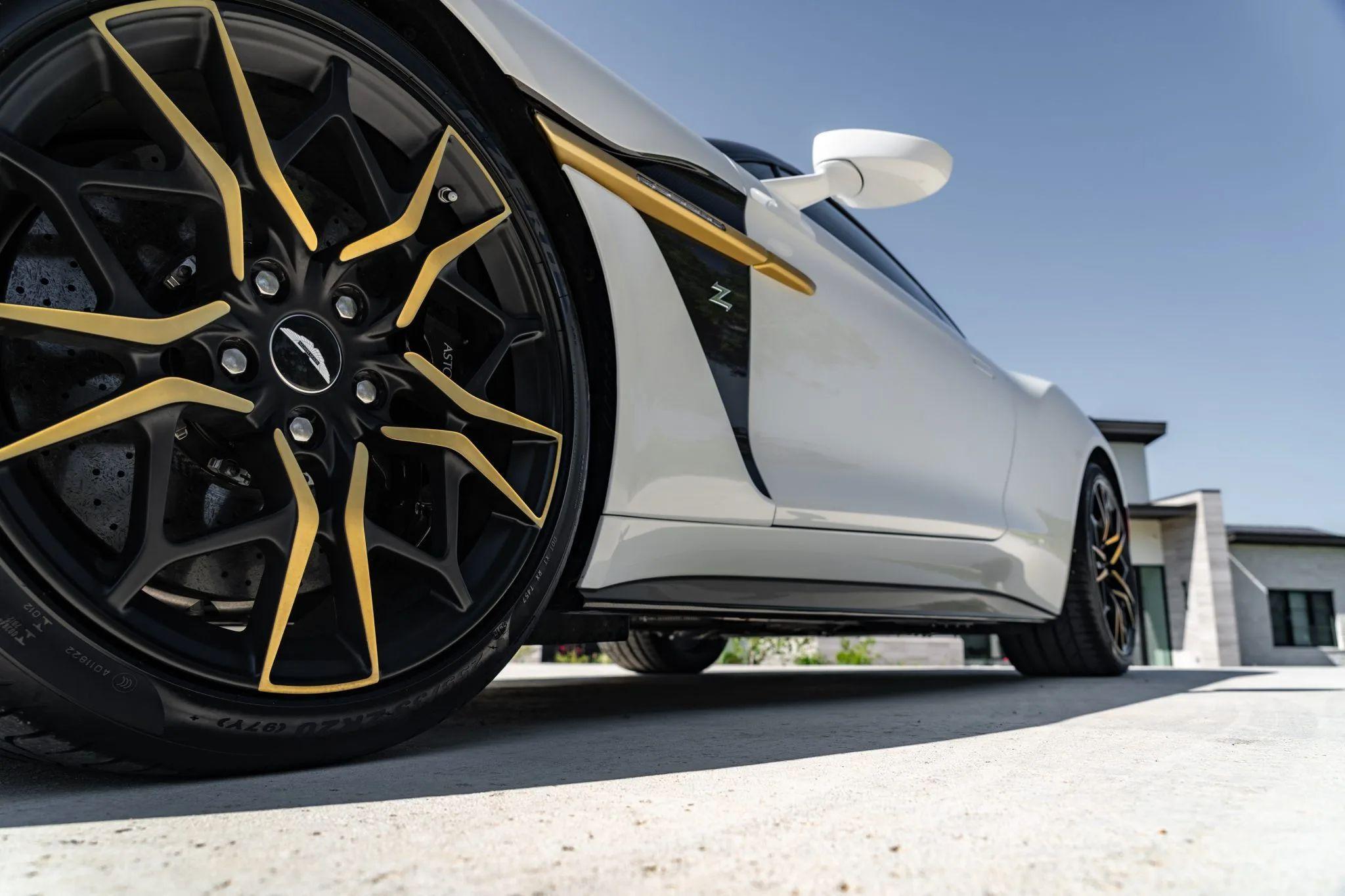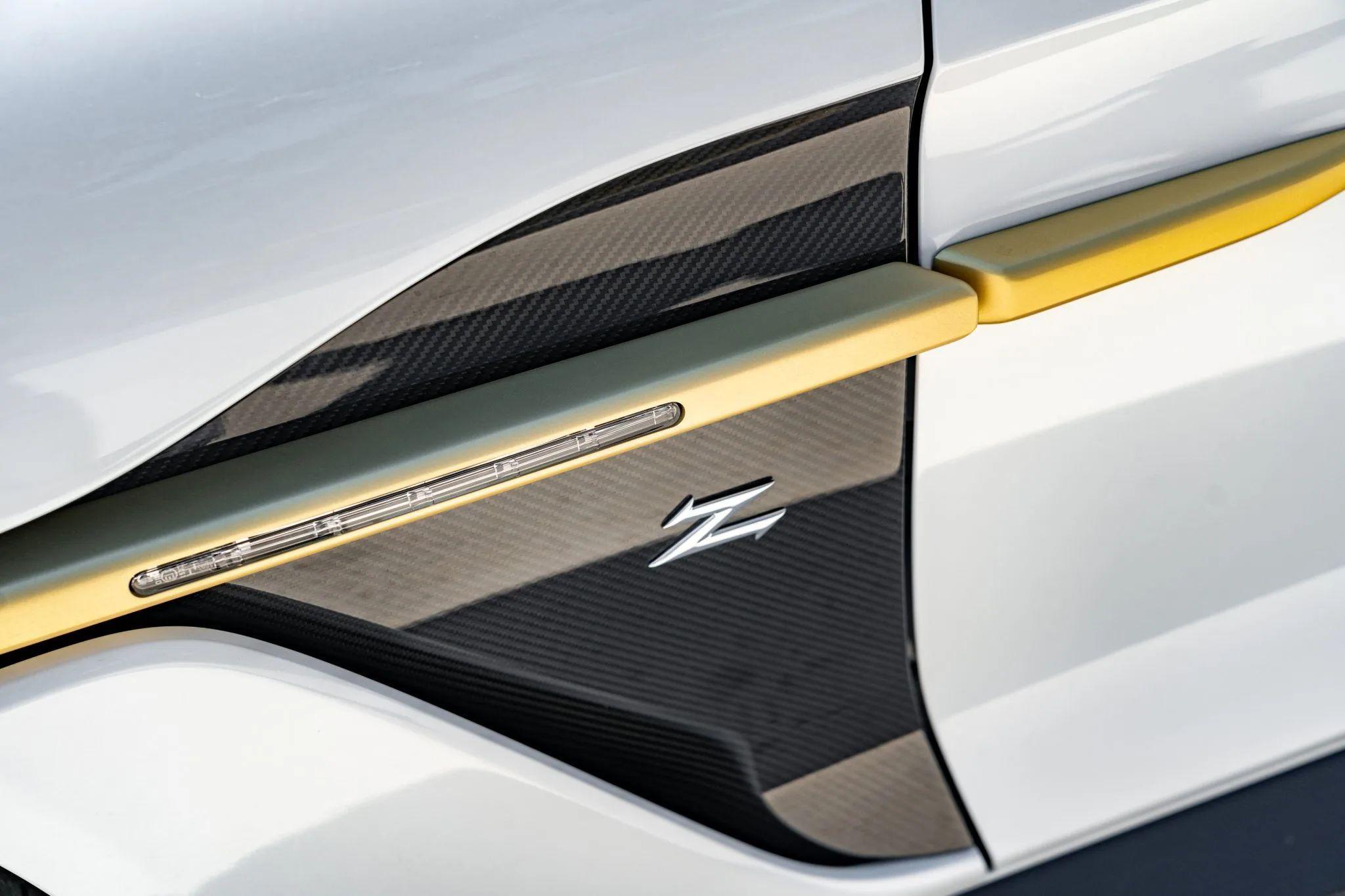 这辆英国超级跑车的外观采用了一种名为Escaping白的颜色,并配有大面积碳纤维材质的包括车顶、前分流器、侧裙和后扩散器。迷人的黑金搭配20寸轮毂被倍耐力 P Zero轮胎包裹着,前轮尺寸为255/35,后轮尺寸为305/30。