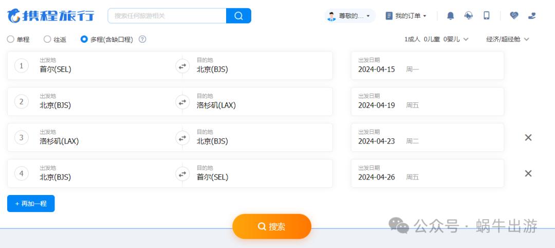由于需要在首尔出发,而北京飞首尔的机票,日常低价。所以成本也不高。并且相当于可以拆成两个行程了。一个是北京往返首尔,另一个就是北京直飞往返洛杉矶了。