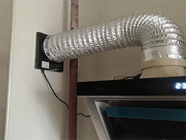 3.如果说已经入住,可以将厨房的集成吊顶拆几块板子下来,进行更换好止烟阀,然后再将集成吊顶恢复。在油烟机安装时,一定要让师傅把止烟阀上的排烟管与油烟机出烟口对接好,这个位置不对接好,前面所做的所有工作等于没做,一样会出现油烟串味的情况出现。