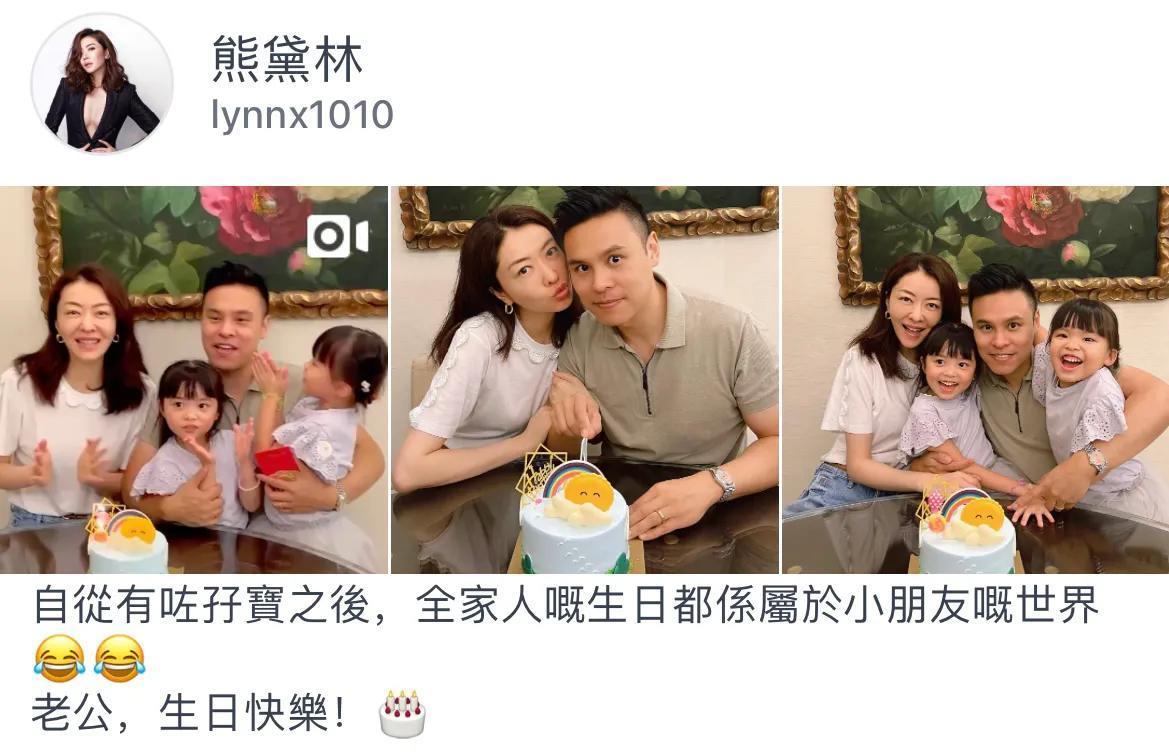 8月12日,熊黛林在社交平台晒出全家福为老公郭可颂庆祝45岁生日,并配文“自从有了孖宝之后,全家人的生日都是属于小朋友的世界,老公,生日快乐!”