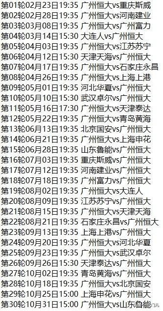 今天,足协公布了2020赛季中超最新赛程,作为上赛季的中超冠军,广州恒大的赛程自然备受瞩目,30场比赛时间和对阵如下: