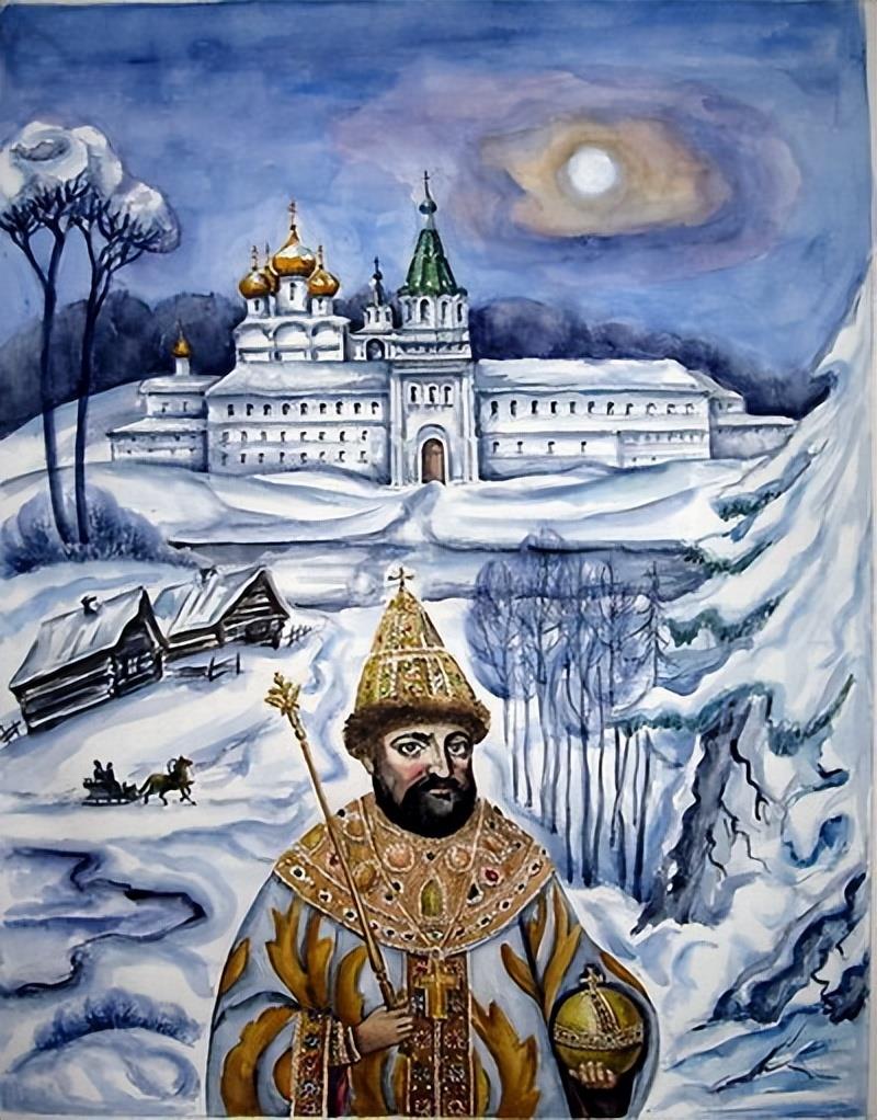 在伊凡四世去世后,经过了15年的“混乱时期”,包括三年的“国无君日”,1613年2月21日,由大贵族组成的全俄缙绅大会,选举米哈伊尔.罗曼诺夫为沙皇。