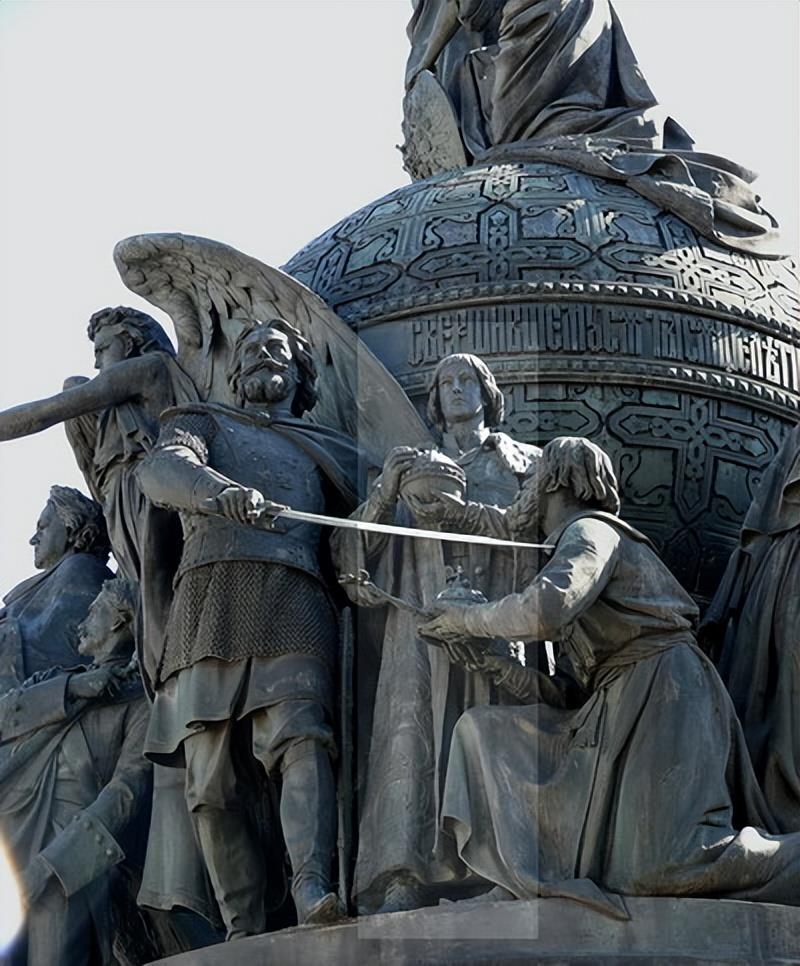大诺夫哥罗德古城中的“千年俄罗斯”群雕中的米哈伊尔(光影条所指的那人)