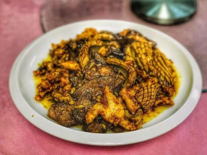 全爆必须是亲民菜系的前三名,鸡肉、虾仁、鱿鱼卷全火爆炒,所有的食材都一瞬间烧熟似的,虽然芡汁包裹得严严实实,但是食材的原味还在。