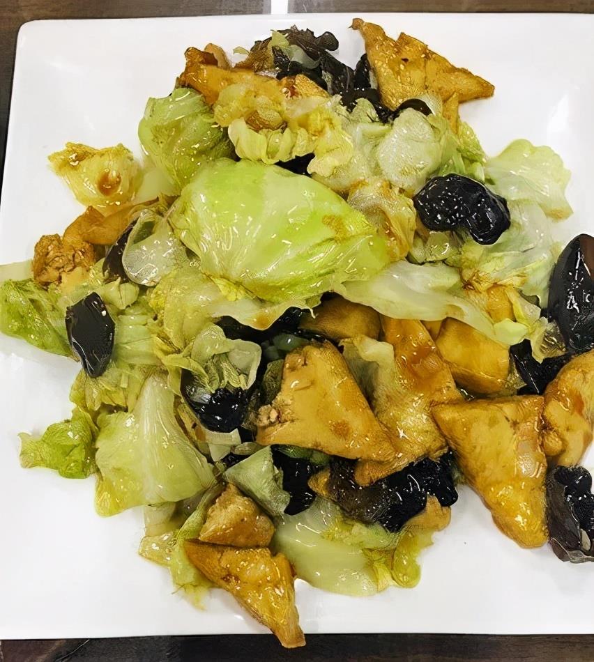 这道菜里的白菜、木耳、豆腐一定要比例均衡,浓稠的酱汁包裹着每一块蔬菜,白菜和木耳甜中带脆才行,豆腐则要外干里嫩为佳。