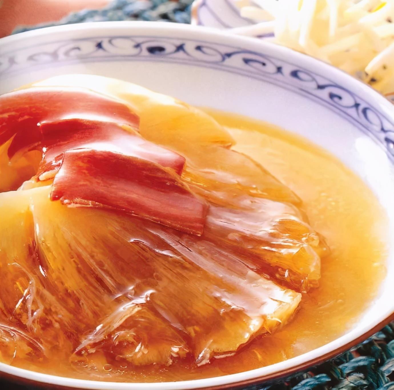用一只自上至下的完好上等整鱼翅制作而成,入口筋肉软烂,味道鲜美浓厚,而且还堪称"大菜之王"。
