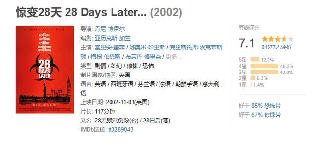 网友评价:本片最吸引人地方是丧尸的速度提升到了极致,丧尸跑步大赛这里面的丧尸能拿前三甲。打不过你也跑不过呀。
