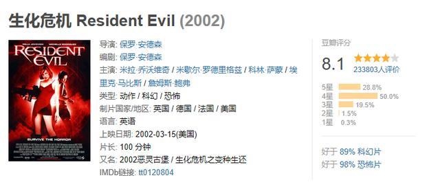 网友评价:生化危机,人性的贪婪造就了一系列的生化灾难,人类几乎灭绝。科学家的疯狂同样对人类也是灾难。整系列连在一起看就是经典啊,也是一个轮回,故事起于浣熊市也终结于浣熊市。
