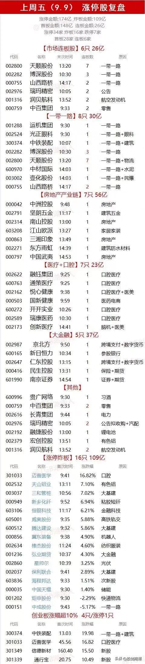 一带一路上周逆势走强,天顺7连板,本周上合组织峰会即将召开,相关细分方向有望进一步发酵。大家记得收藏,选股就方便多了。