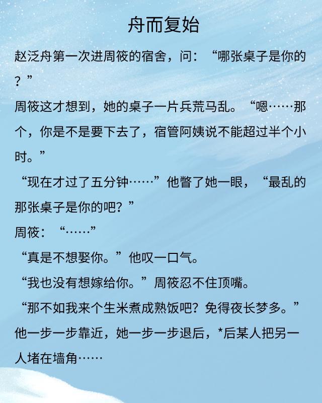 《舟而复始》也拍成了电视剧,剧名为《致我们甜甜的小美满》,不得不说,赵乾乾这三部小说,都是一样的命名方式。赵泛舟和周筱认识略显俗套,奈何作者文笔不落俗套,引人入胜。