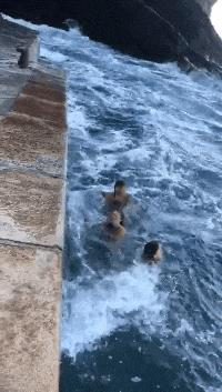2、这么大的浪还敢在海边游泳,奉劝大家别模仿,危险!
