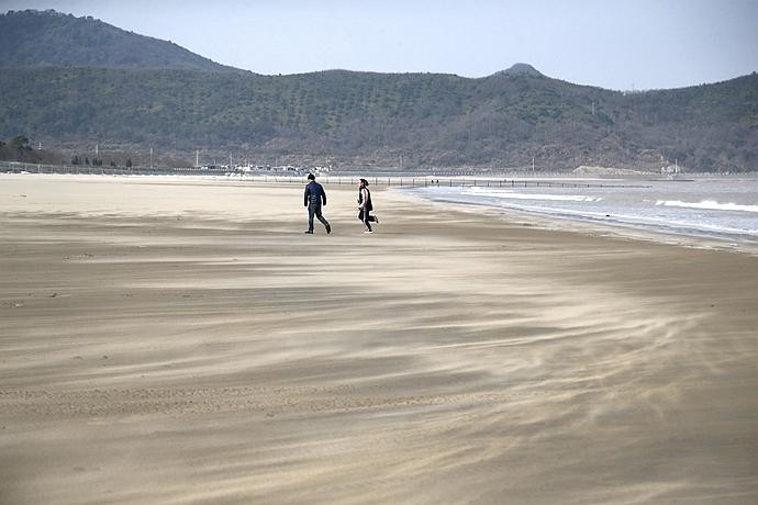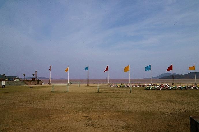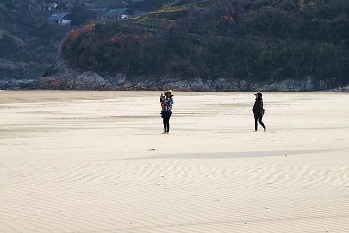 27.这里的沙滩横亘1800米,落宽300米,呈弯月型,属于陆岸沙滩。坡度很缓(国际上坡度为千分之一的沙滩为最完美的沙滩),沙质极佳。上沙滩玩,退潮时为最佳,竟然退出上千米远的“铁板沙”平川。
