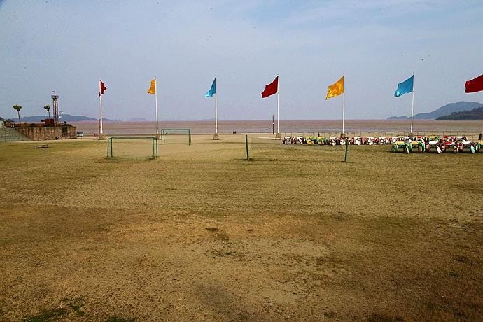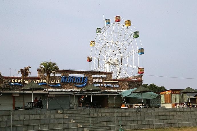 1.中国渔村大门口,由于是不能游泳的淡季,这里现在门票半价,每人30元,依然包含摩天轮等游乐项目。