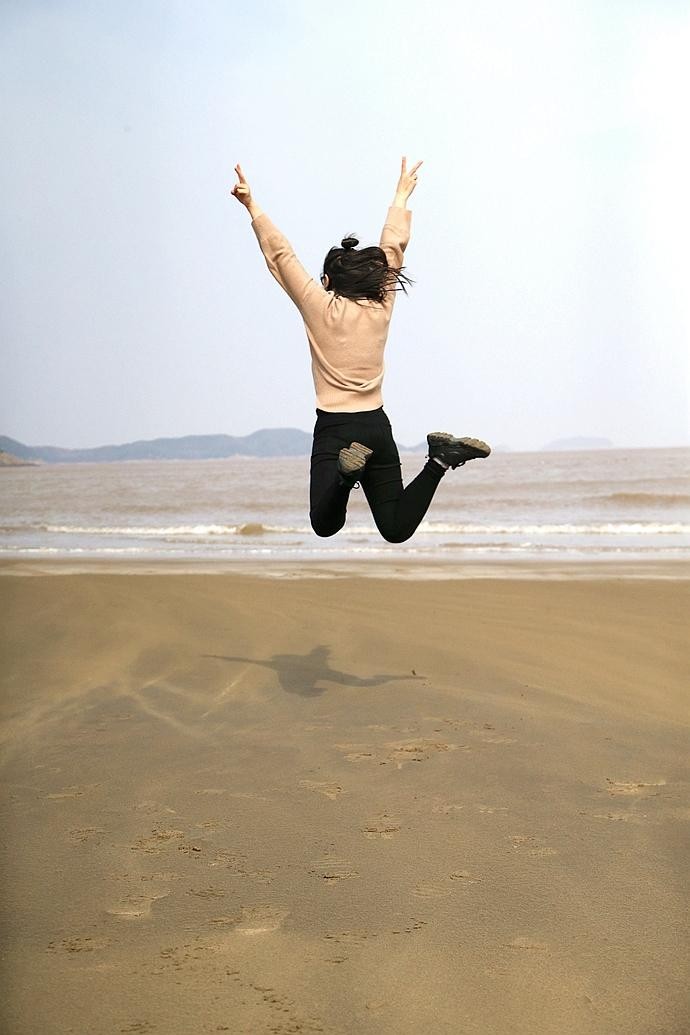28,美女在盛景中陶醉,情不自禁地高高跃起。