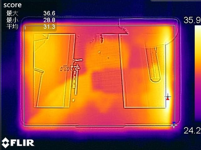 正面的最大温度为36.6℃、平均温度は31.3℃