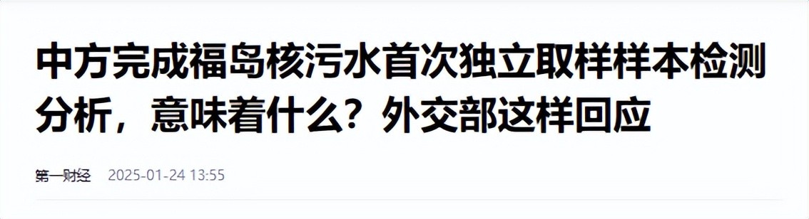 第一财经2025-01-24 13:55——中方完成福岛核污水首次独立取样样本检测分析,意味着什么?外交部这样回应