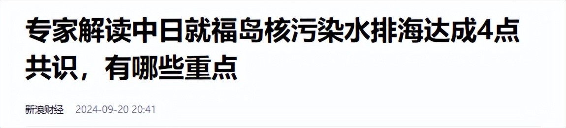 新浪财经2024-09-20 20:41——专家解读中日就福岛核污染水排海达成4点共识,有哪些重点
