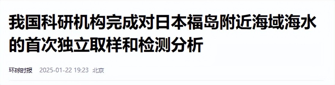 环球时报2025-01-22 19:23北京——我国科研机构完成对日本福岛附近海域海水的首次独立取样和检测分析