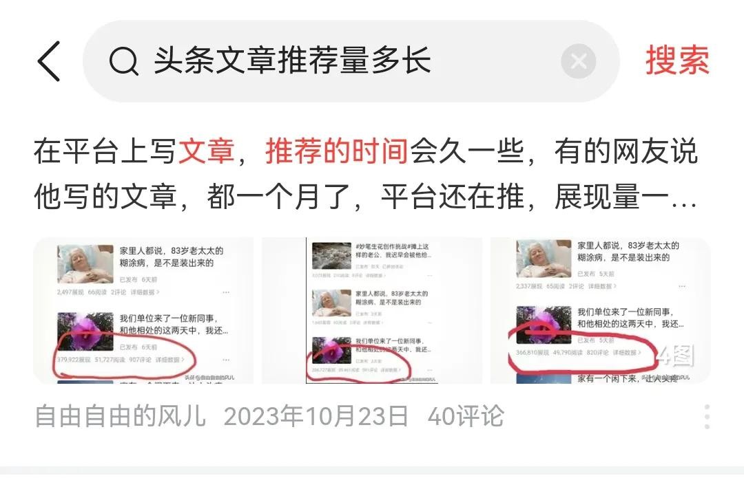 头条文章的流量推荐没有微头条的流量推荐高,但推荐周期相对较长。