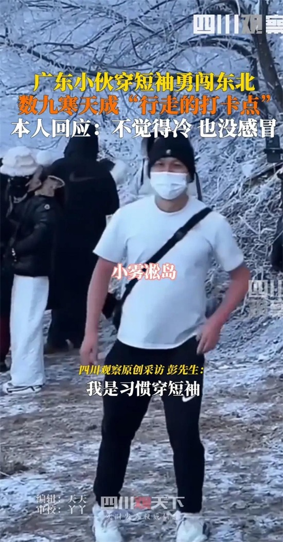2025年1月11日,吉林长春街头,人潮涌动,大家裹着厚重棉衣、羽绒服,抵御室外的严寒。就在这时,一位身着短袖的年轻小伙穿梭其中,显得格格不入,瞬间吸引众人目光。经询问,这位小伙来自广东,已在东北待了大半个月,全程仅穿短袖。他表示,自己一直习惯穿短袖,即便在寒冷的东北,也没觉得受不了,虽然手偶尔会冻得有些僵硬,但整体感觉并不冷。而且在这大半个月里,他每天都会走上六七个小时,四处游玩,身体并无异样,也没有感冒发烧。