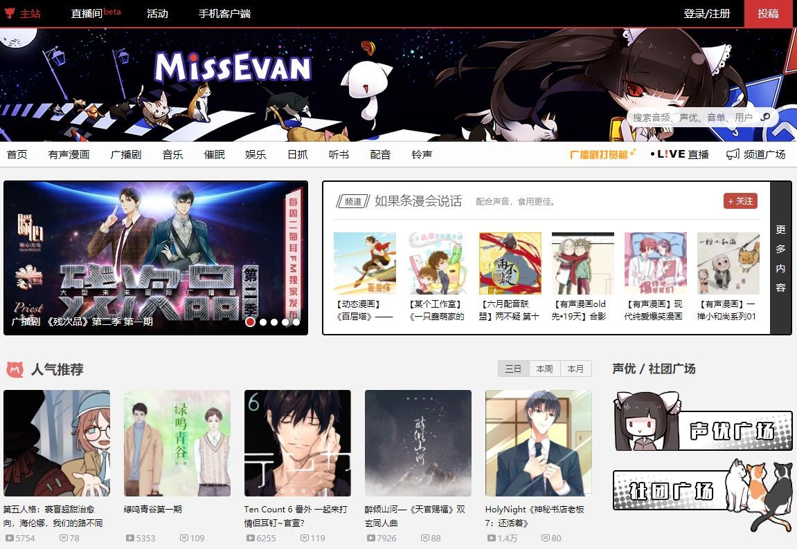 M站:通常指猫耳FM,国内最大的弹幕音图站,各种广播剧,有声漫画,有声小说,电台节目都可以在里面找到。