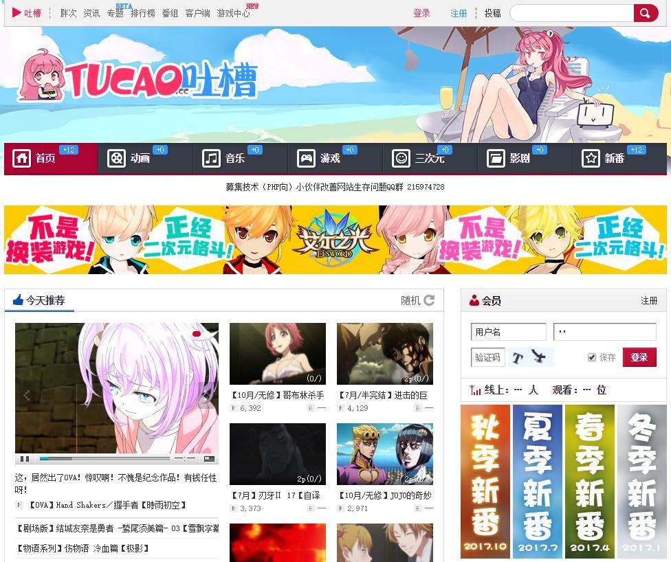 C站:全称“TUCAO吐槽”,是一个弹幕视频分享网站,视频大多来源于日本电视台的深夜动画,内容偏绅士,口号是“吐槽你就输了”