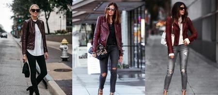 百搭指数不失于黑色的酒红色皮夹克
