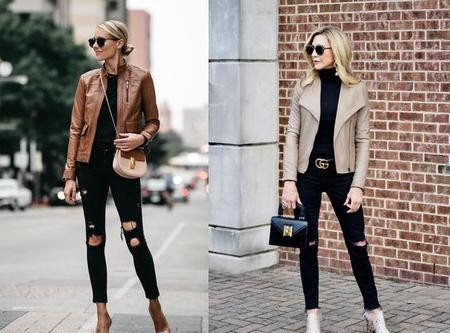 皮夹克是一件混搭性特别强的单品,并且虽然本身看起来酷酷的,但是却能与各种颜色,即使是极为少女的色彩融合的很好,进而营造出多种百变的风格。尤其是黑色皮夹克,简直是堪称万能搭配王。