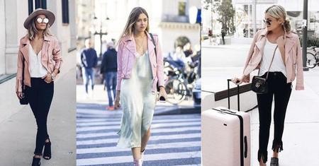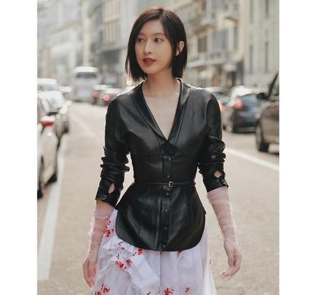 当然除了黑色皮夹克,像属于少女的超酷气场的粉色皮夹克