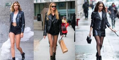 黑色皮夹克+短裤or短裙