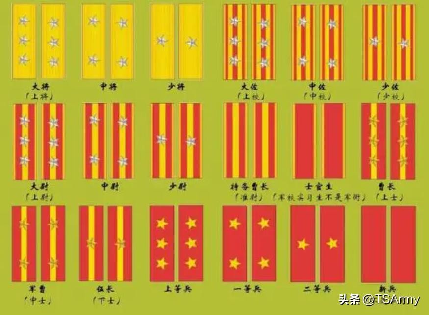 下面请看详细的各级军衔肩章和基本职位。